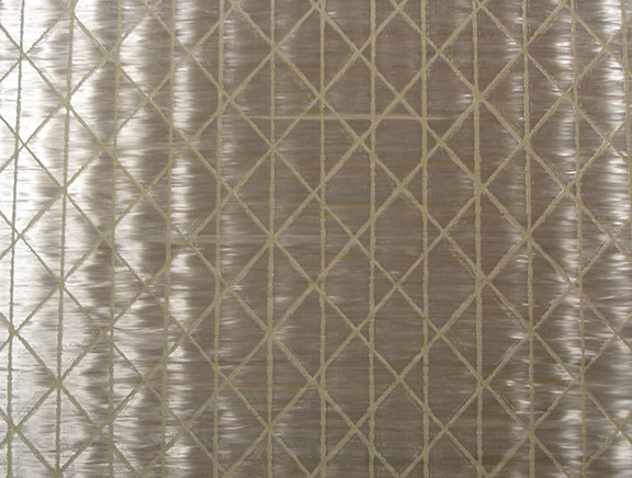 Weft or warp yarns can be of many fiber types. Fabric is non-woven, bonded.